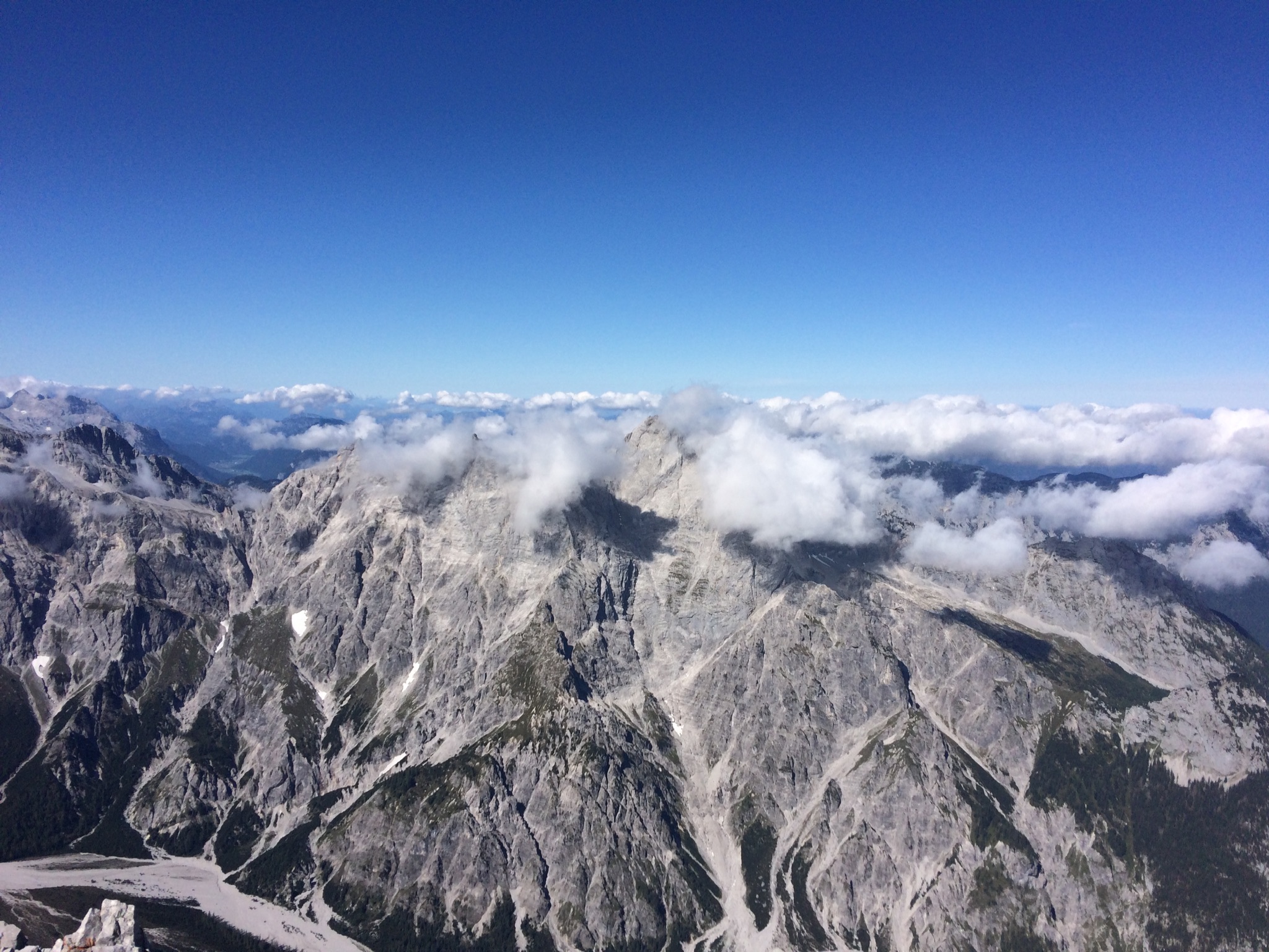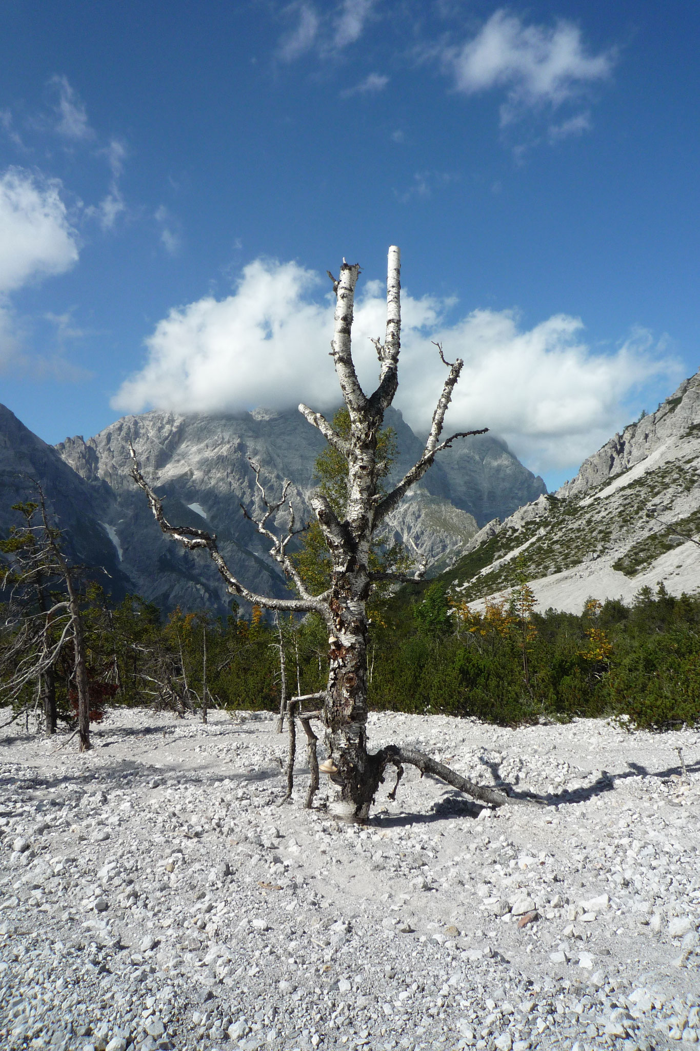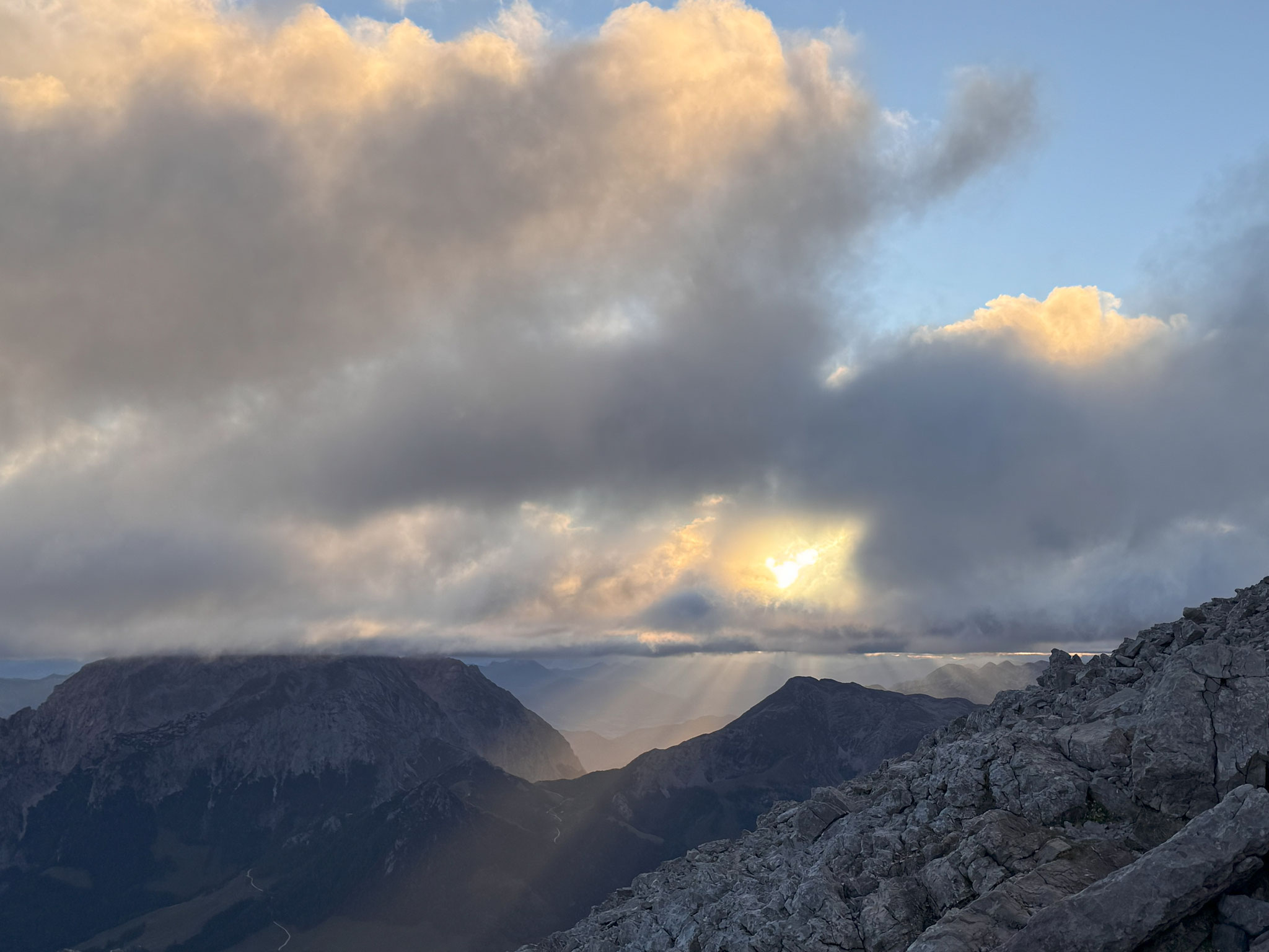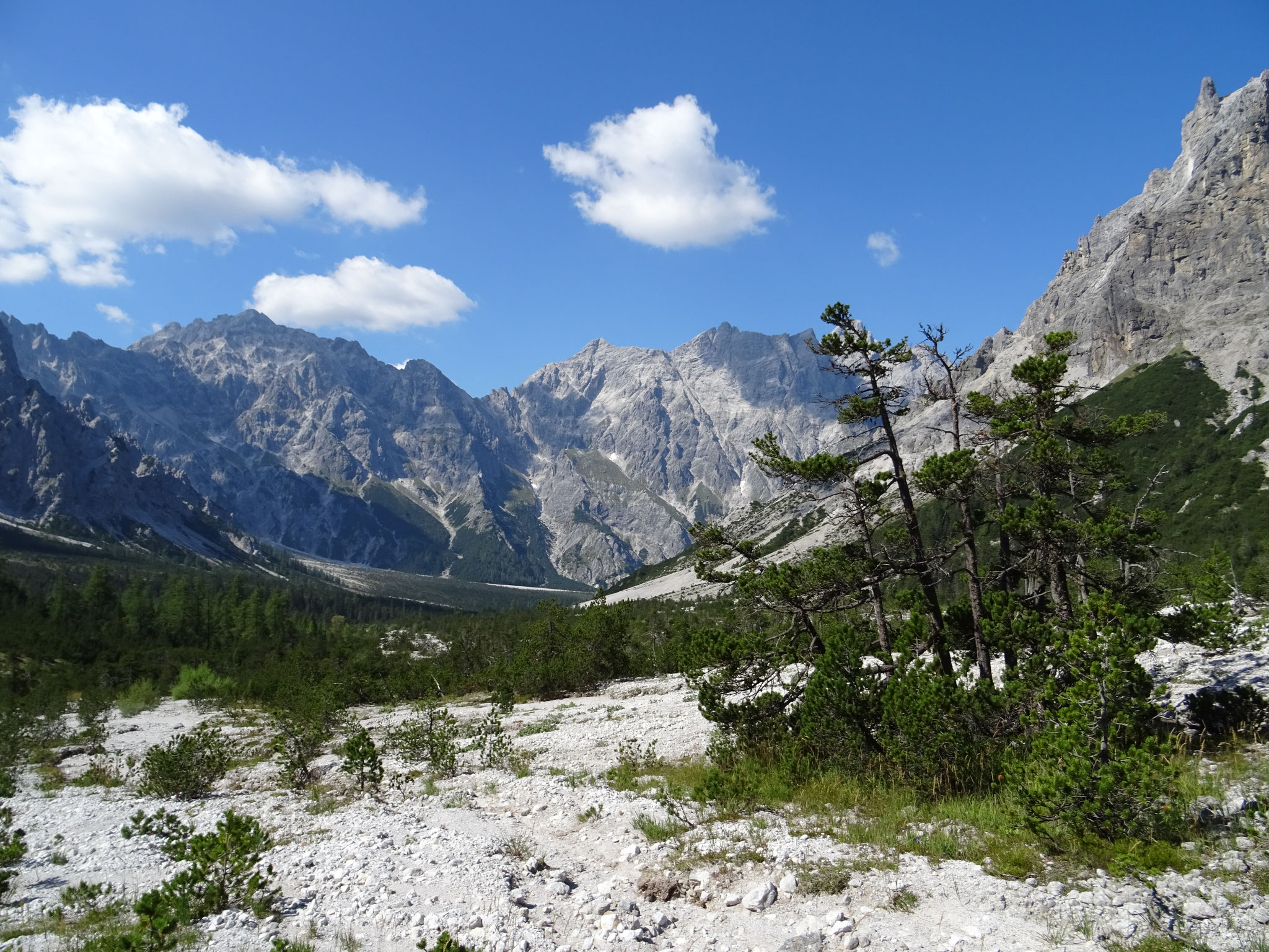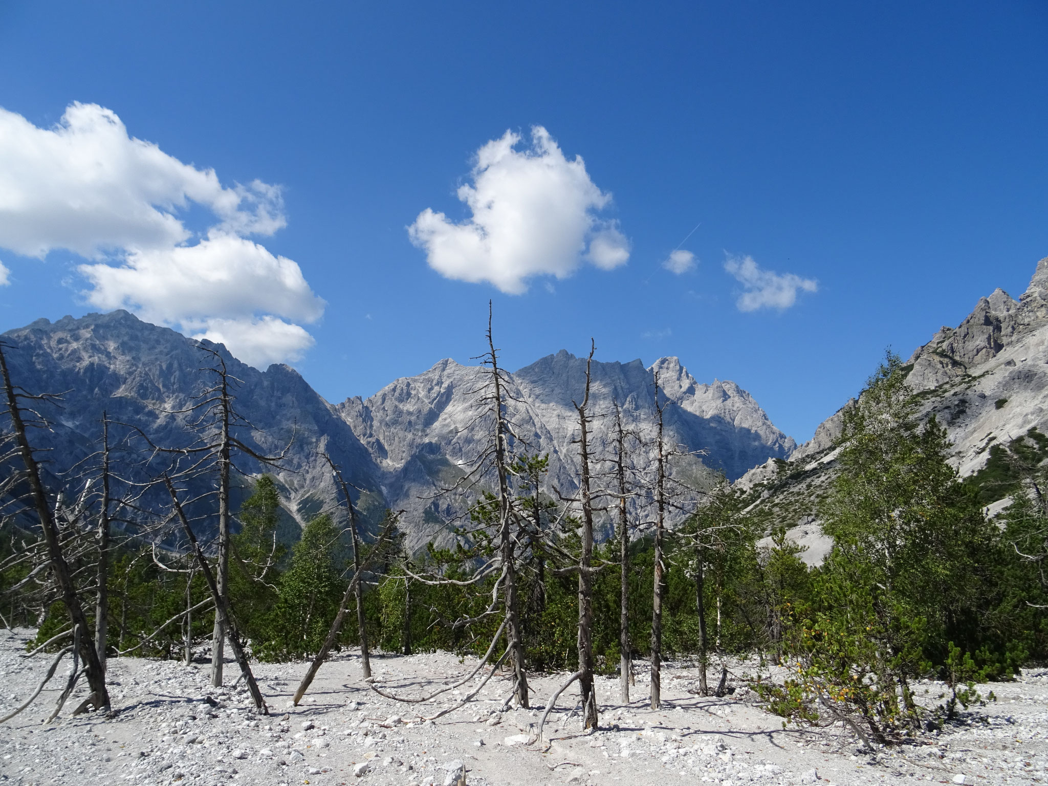 es nun, immer noch steigend und kletternd, hinab über die Südflanke ins Wimbachgries. Dieser Abschnitt erstreckt sich über eine Länge von 1300 hm über Geröll und Felsen. Der Abstieg stellt eine