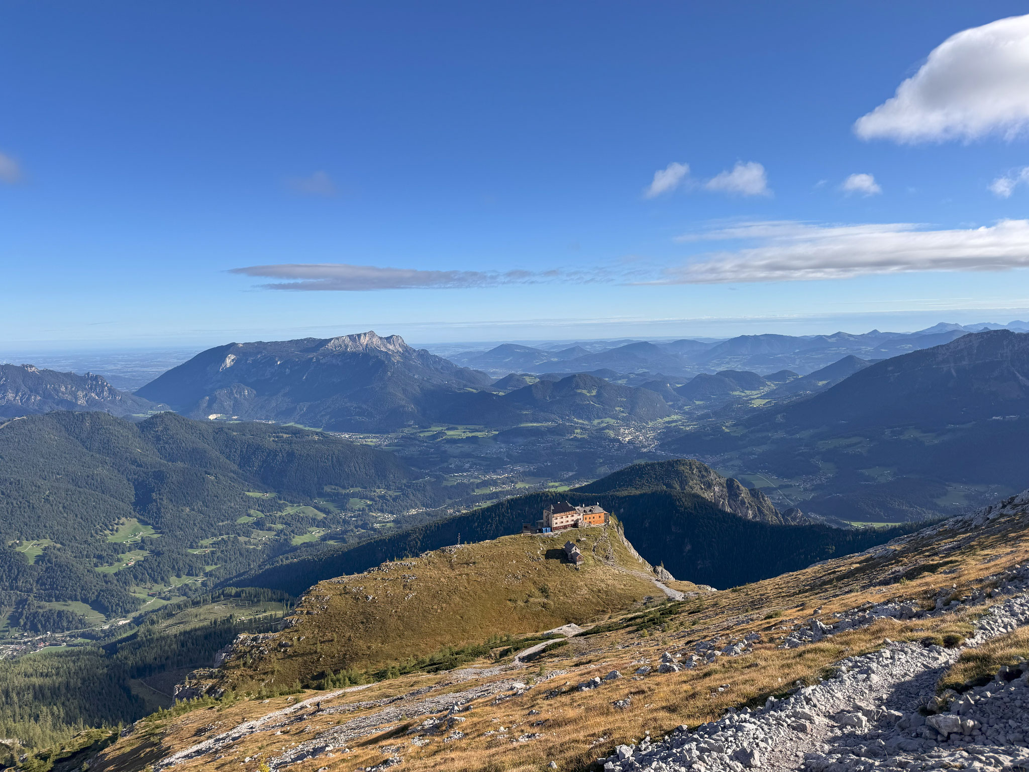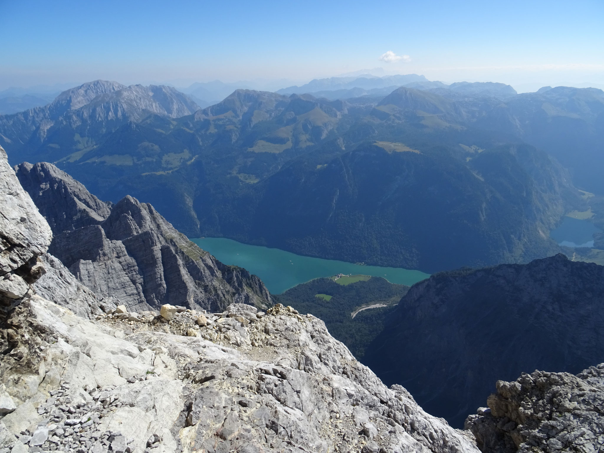 überglücklich und genießen bei einer verdienten Pause die Aussicht auf die Berchtesgadener Alpen und den Königssee, auch Sankt Bartholomä können wir von hier aus erkennen. Von der Südspitze geht