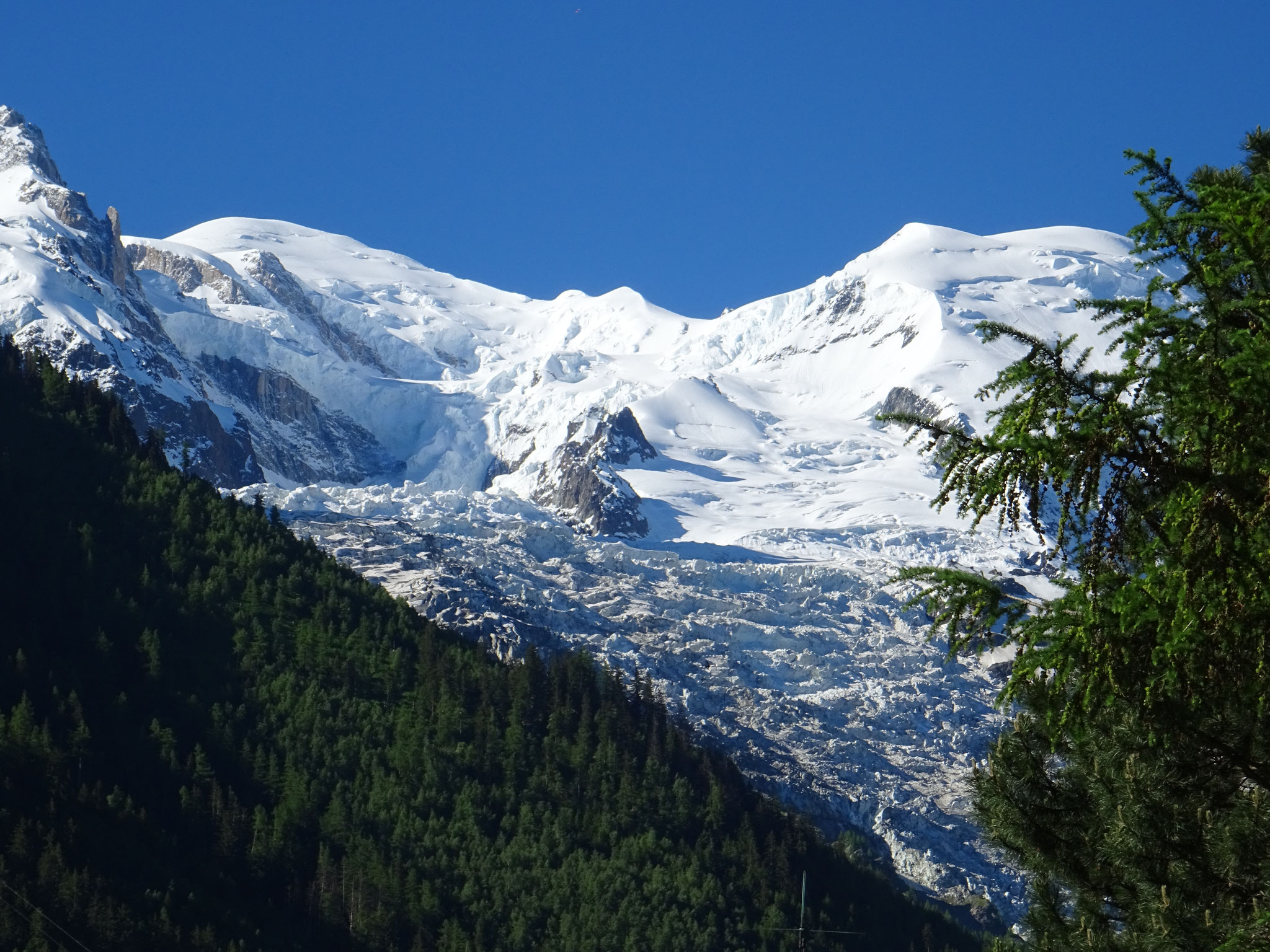 Gleich nach dem Frühstück steigen wir ab und durchqueren das besagte Couloir zu sicherer Zeit, da es dann noch im Schatten liegt. Gegen Mittag sind wir dann glücklich in Chamonix. Für eine
