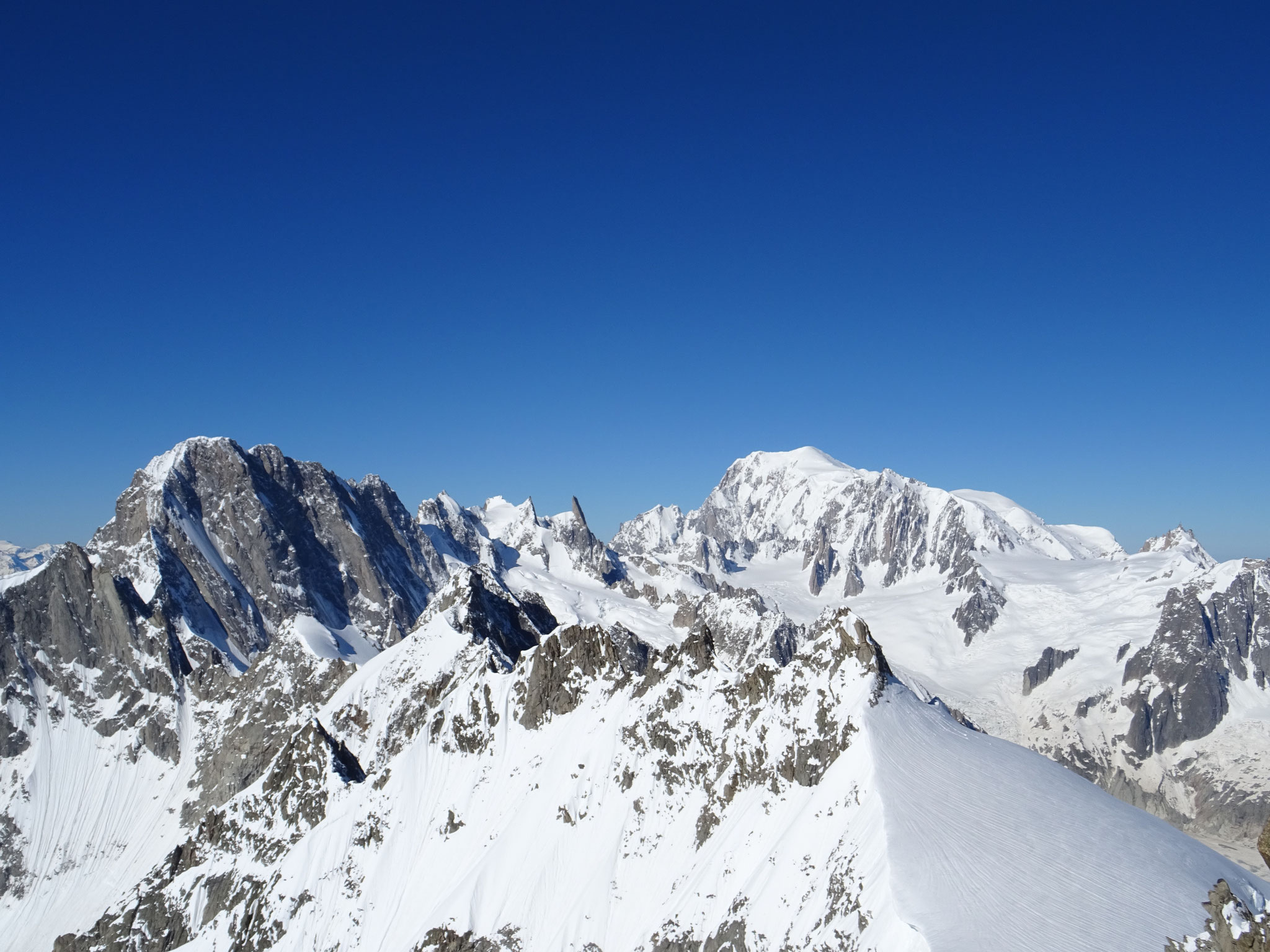 Am nächsten Morgen geht es dann sehr früh los. Überschreitung von Mont Blanc du Tacul und Mont Maudit um schon früh am Vormittag auf dem Gipfel des Mont Blanc zu stehen. Ein überwältigendes