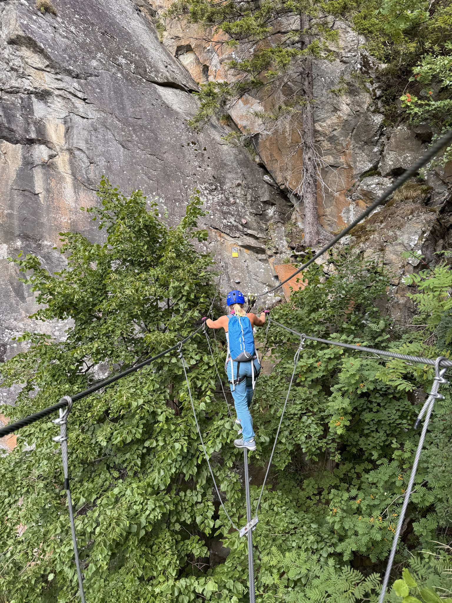 Der Klettersteig ist sehr professionell angelegt und steigert sich in den Schwierigkeiten kontinuierlich - vor allem im oberen, zweiten Abschnitt nach der Seilbrücke. Bei der „Felskanzel“ gibt es die Möglichkeit auszusteigen.