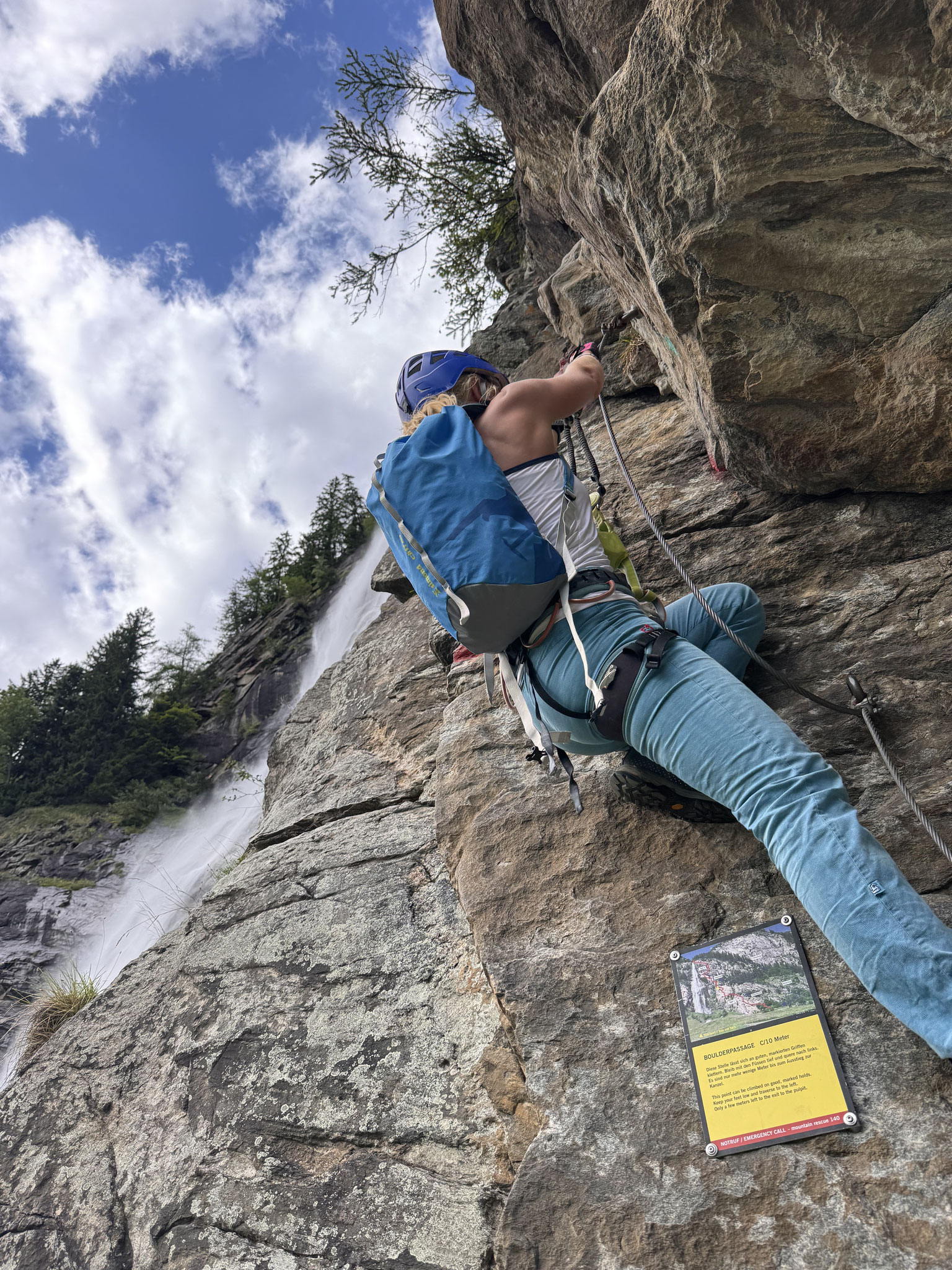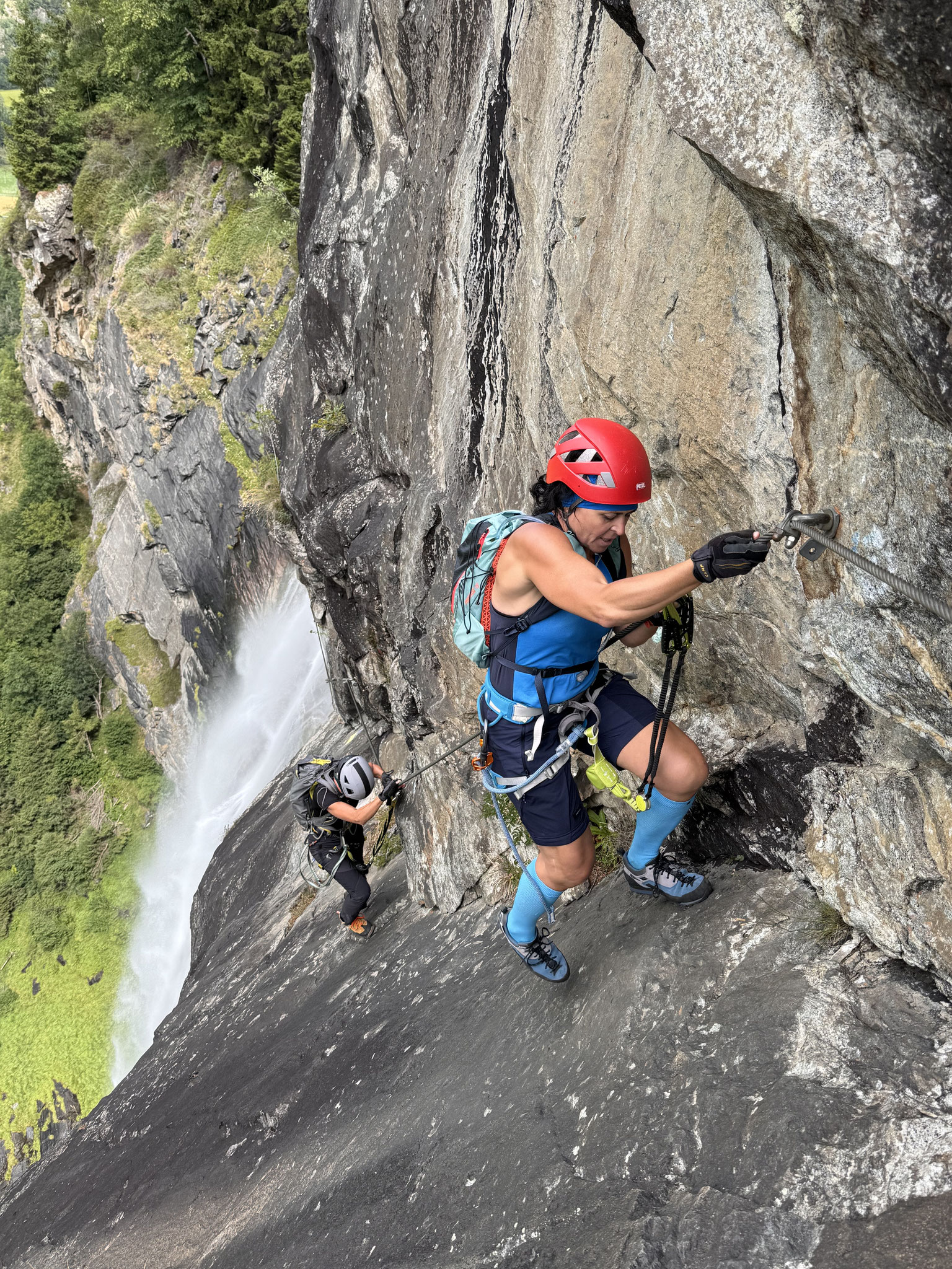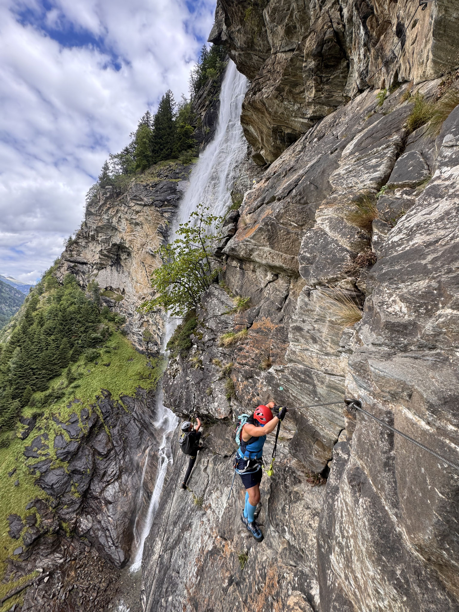 Großartiger, abenteuerlicher und sehr anspruchsvoller Sportklettersteig im Nahbereich des höchsten Wasserfalls von Kärnten im Maltatal. An Ausgesetztheit, sportlich-kraftraubender Wegführung und eindrucksvoller Wasserfall-Kulisse kaum mehr zu überbieten!