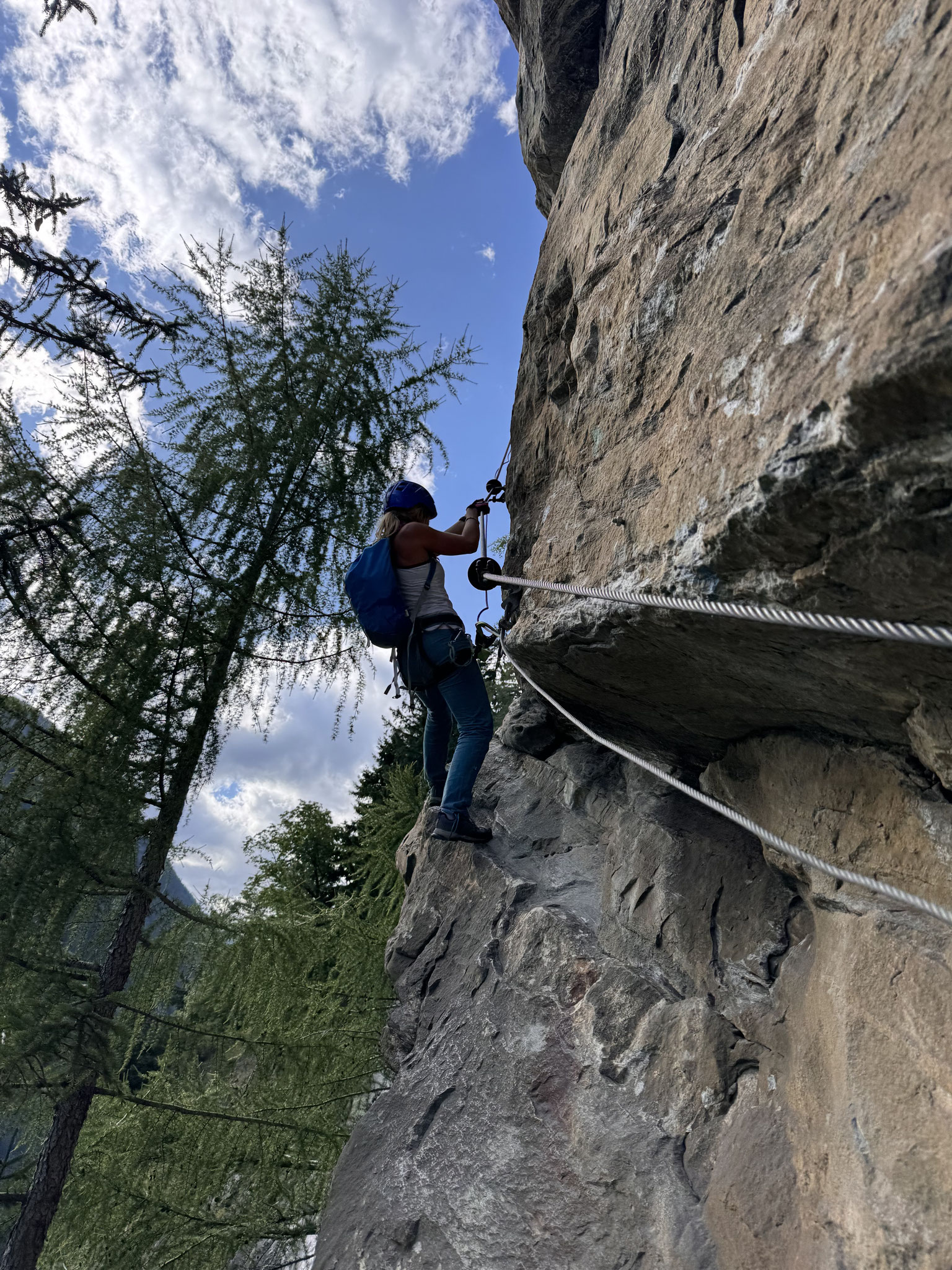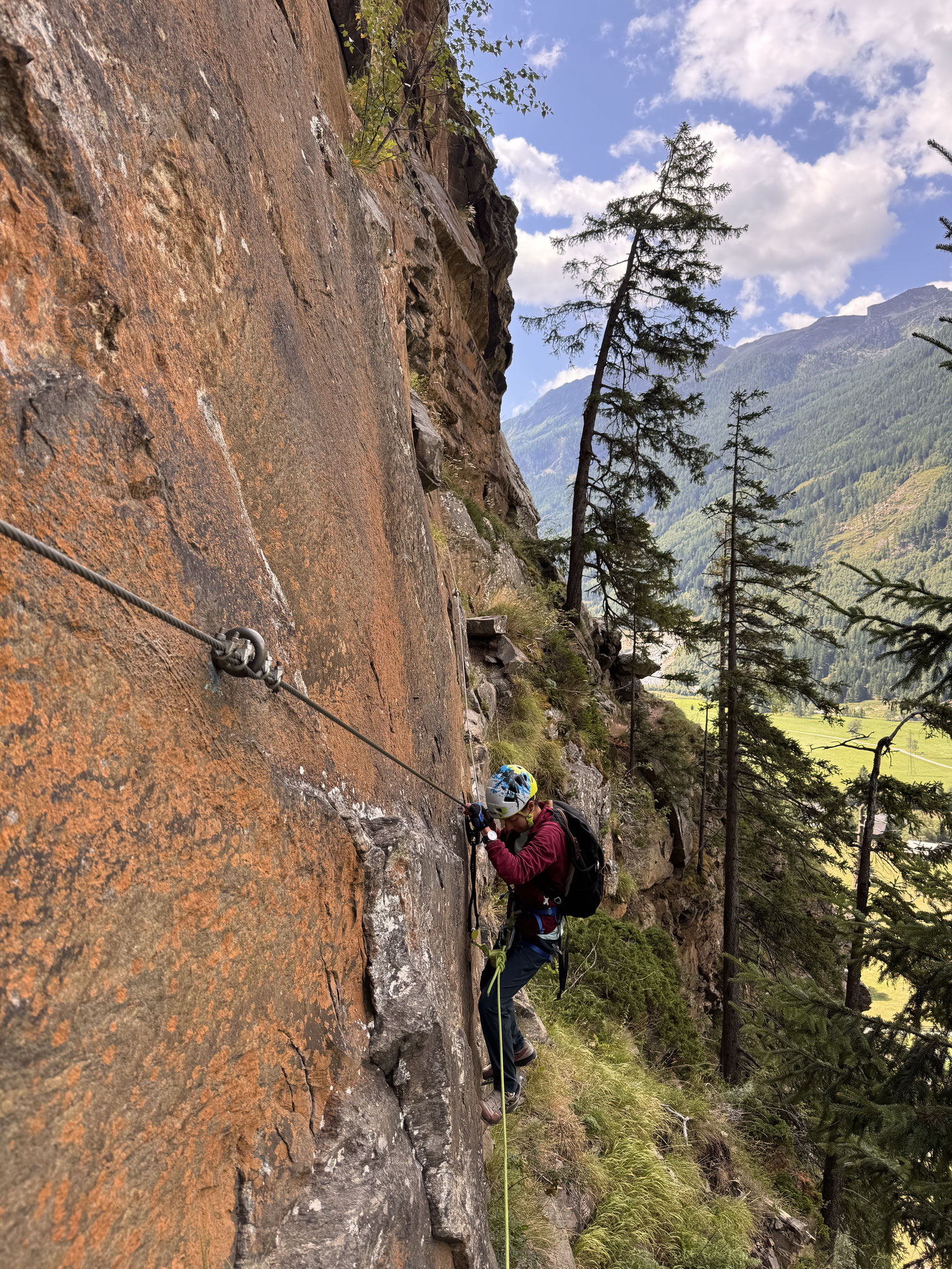 Gutes Schuhwerk (leichte Bergschuhe oder Zustiegsschuhe) solltest du selber mitbringen. Sicherungsmaterial (Gurt, Klettersteigset) und Helm kann von mir gegen Aufpreis geliehen werden, falls kein eigenes vorhanden. Rucksack mit Getränk und Wechselbekleidung mitbringen.
